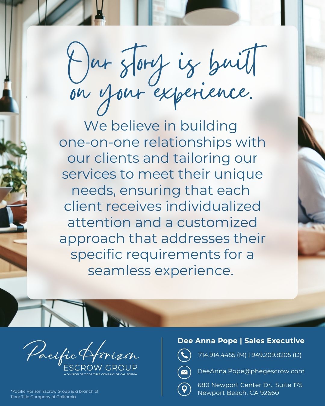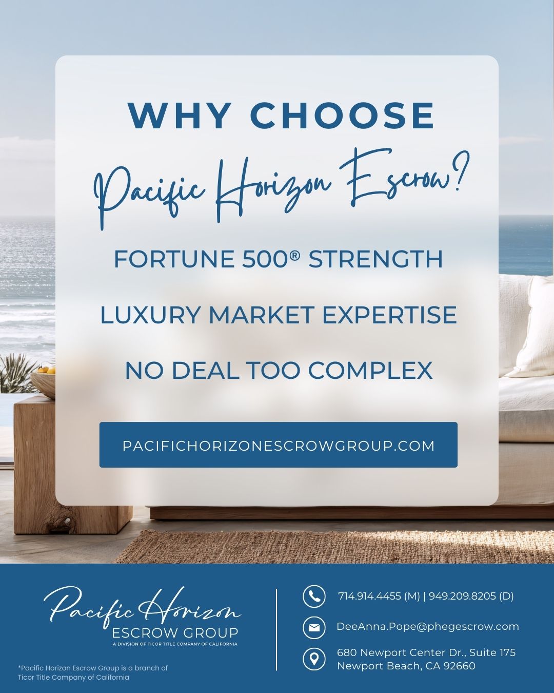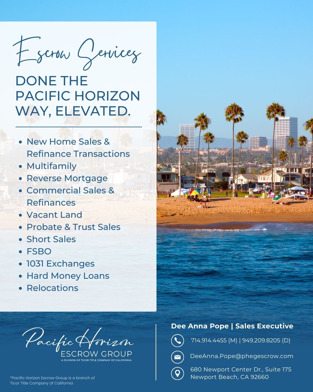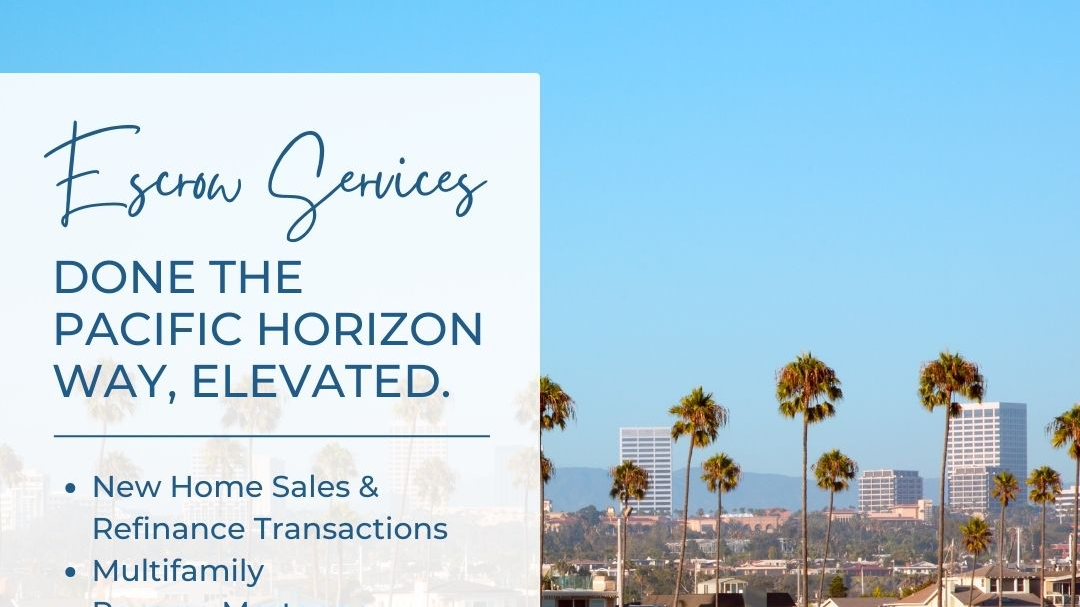 At Pacific Horizon Escrow Group, we are dedicated to delivering an elevated escrow experience while safeguarding the interests of all parties in every real estate transaction. Whether facilitating the purchase of a new single-family home or managing the refinance of a large commercial property, Pacific Horizon Escrow provides comprehensive escrow settlement services with unmatched transparency, security, professionalism, and care. Pacific Horizon Escrow Group operates as a trusted division of Ticor Title Company of California and is wholly owned by Fidelity National Financial (NYSE: FNF), a FORTUNE® 500 Company.